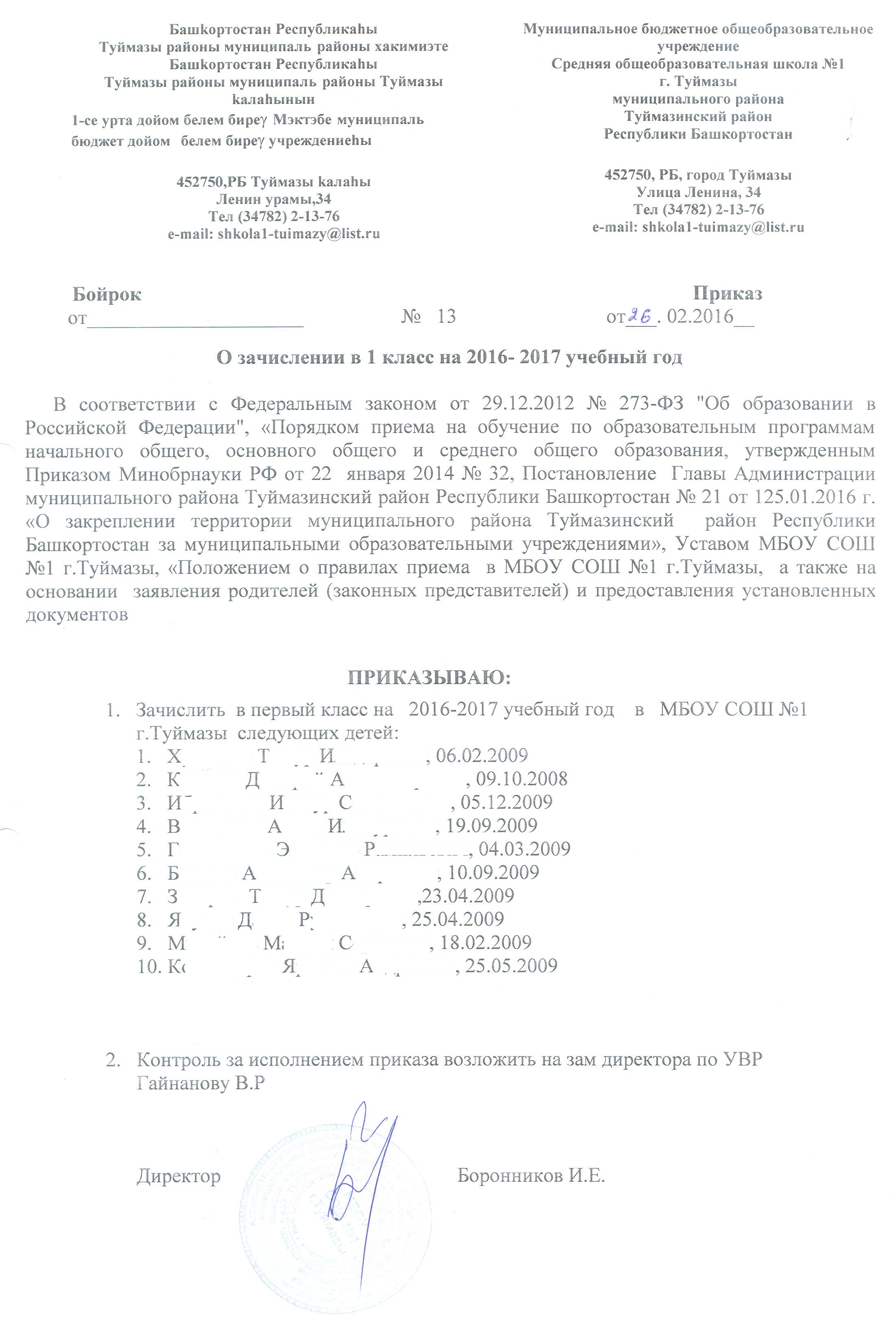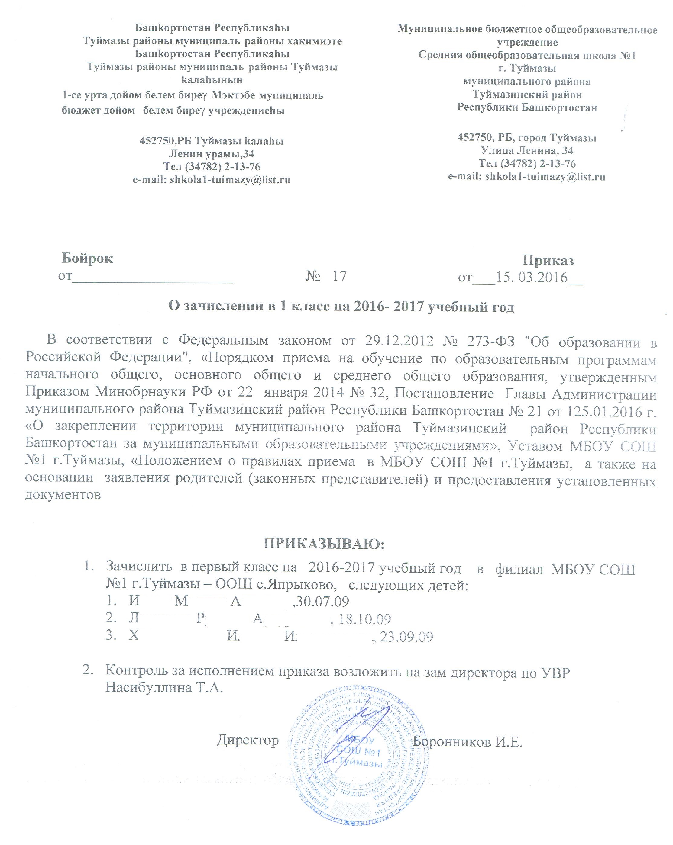 Муниципальное бюджетное общеобразовательное учреждение средняя общеобразовательная школа №1 города Туймазы