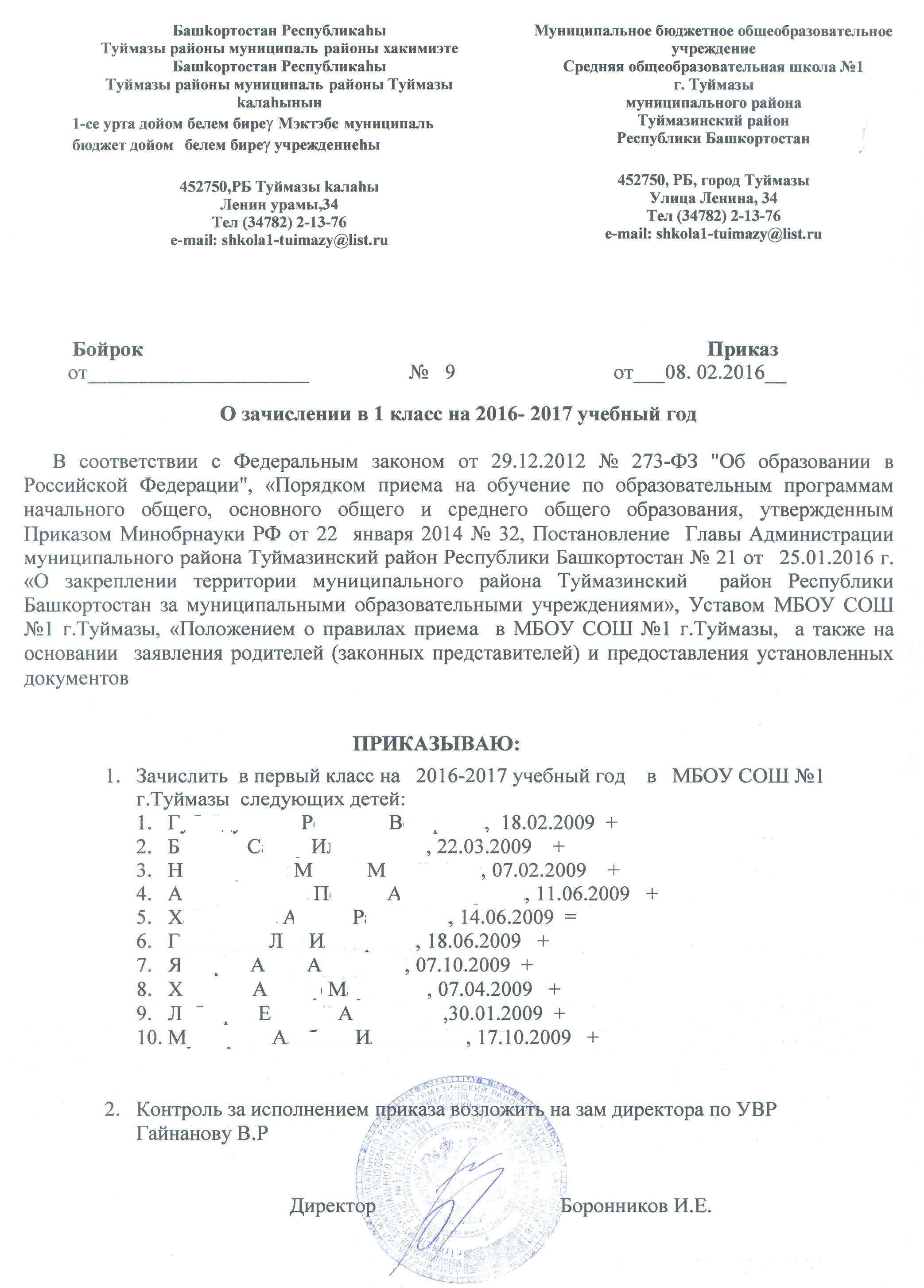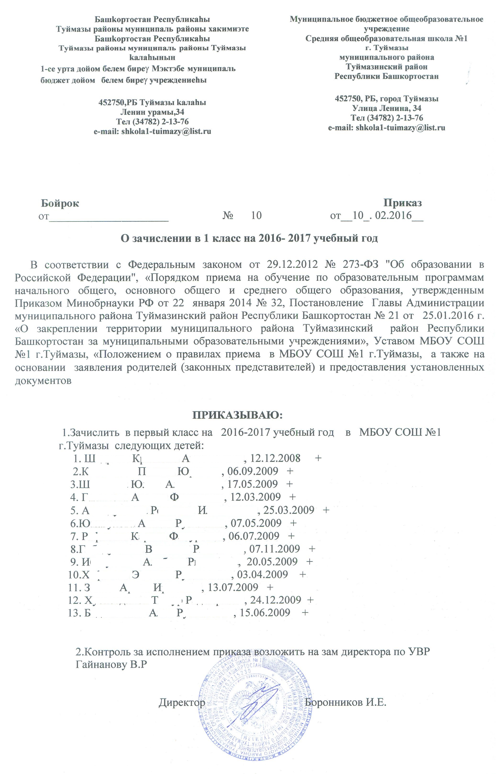Муниципальное бюджетное общеобразовательное учреждение средняя общеобразовательная школа №1 города Туймазы